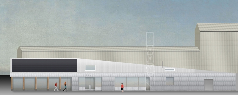 The language of the building marries the home-grown sensibility of Cody Dock with the off-the-shelf aesthetics of the light-industrial estate that surrounds the site. It is driven by a low-embodied carbon approach with simplicity of assembly; which will allow volunteers to participate in some aspects of its construction.