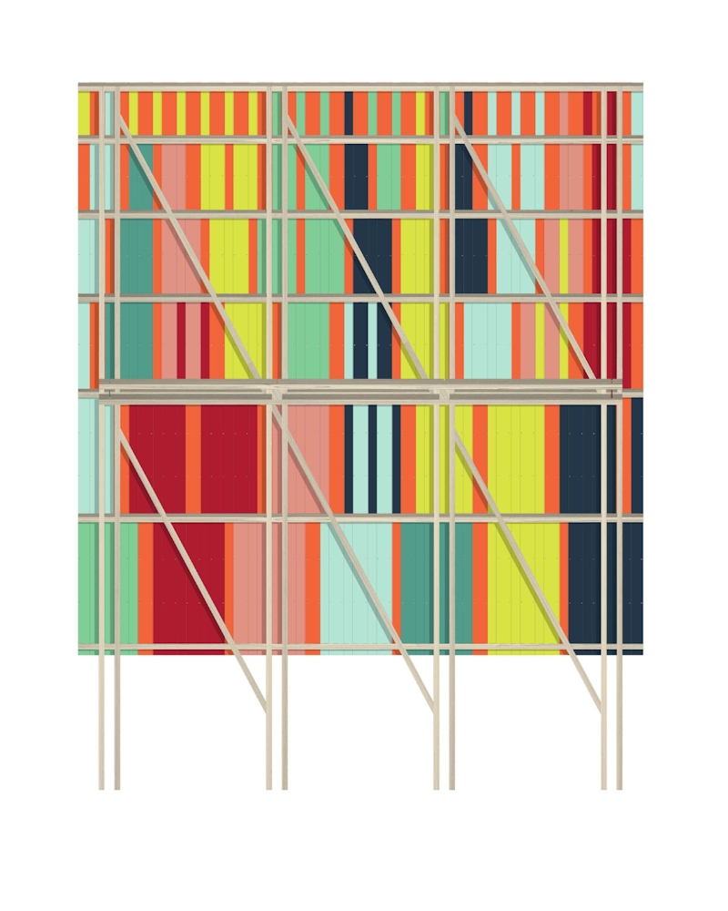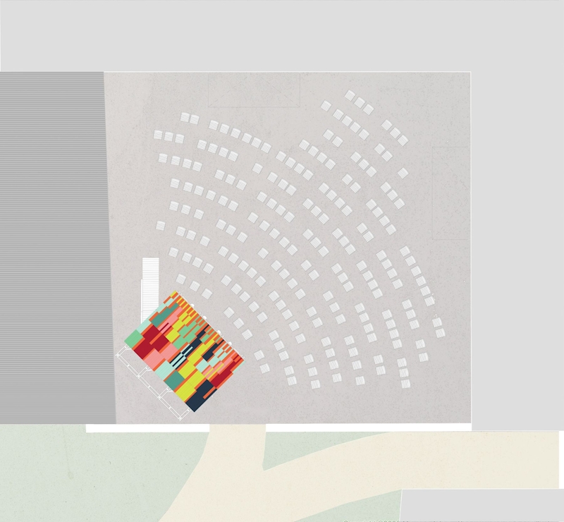The positioning and location of the stage were carefully chosen to allow it to sit comfortably in context, creating new views of the house. When viewed from a distance, it acts as a colourful billboard, advertising its presence and activity on-site.