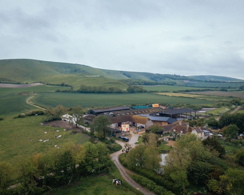 The stage stands out against the landscape and the natural palette of stone, flint, clay of the existing buildings yet retains a strong connection to the place through materials (timber and chalk paint) and colours inside the house.