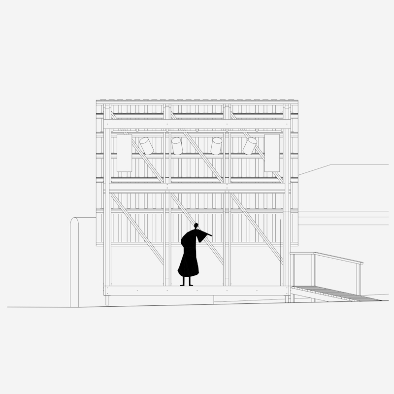 The materials used in temporary projects can quickly become waste once their use is over. This was addressed by using only sustainably sourced solid timber construction with bolted connections, an inherently low-embodied carbon approach. The whole structure may be de-constructed, re-constructed, composted or re-used as timber..