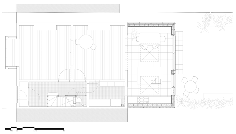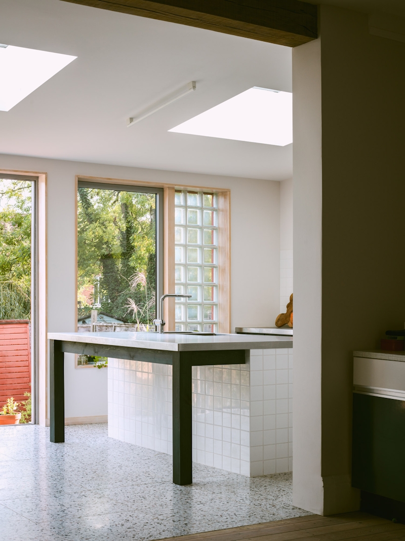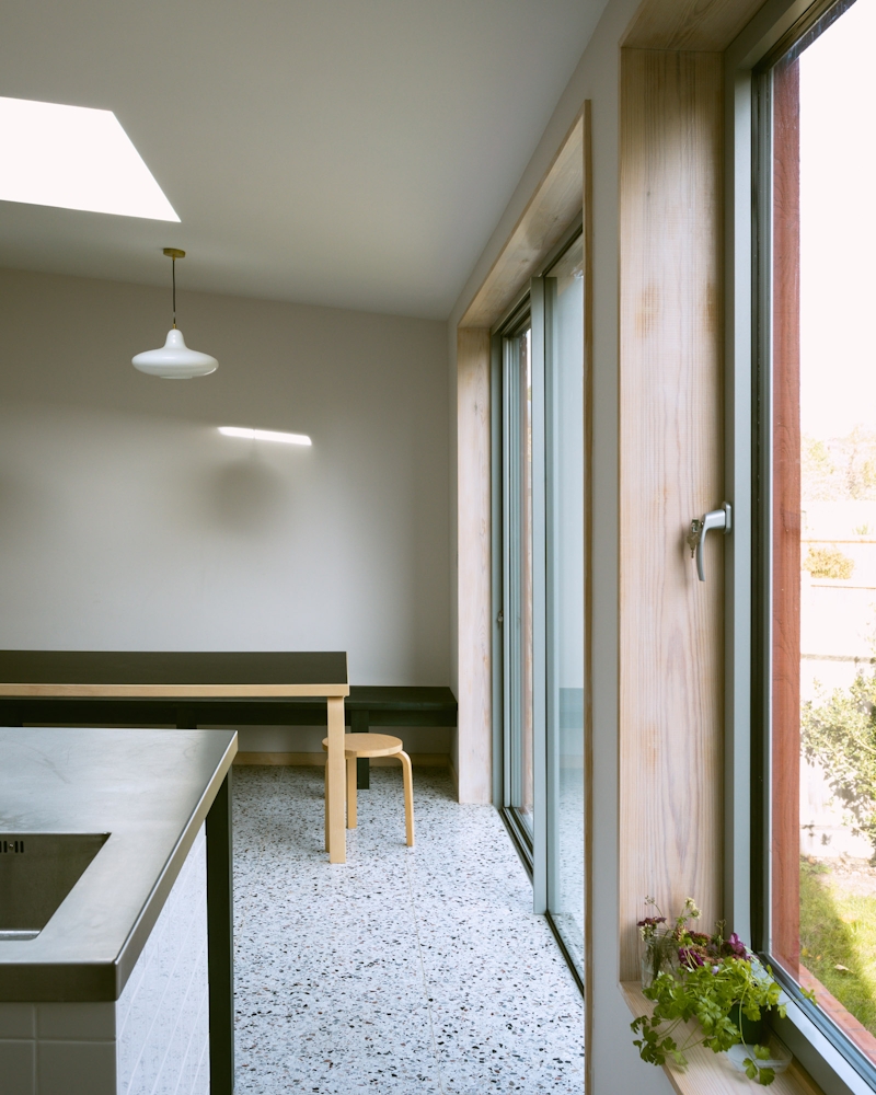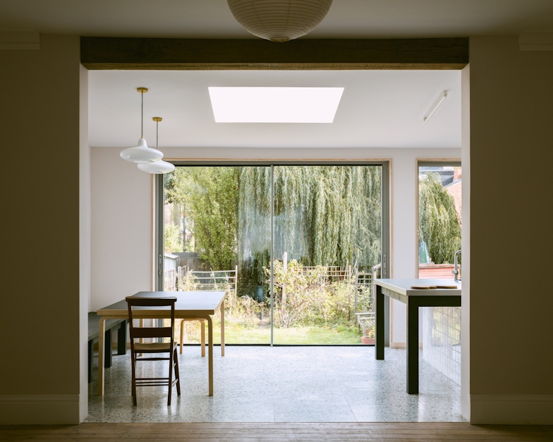 Generous glazed doors, windows and rooflights in the new structure help to reflect a huge amount of light into the rear of the house, which was previously dark. Special care was given to align openings all the way through the house in order to maximise daylight into the depth of the plan.