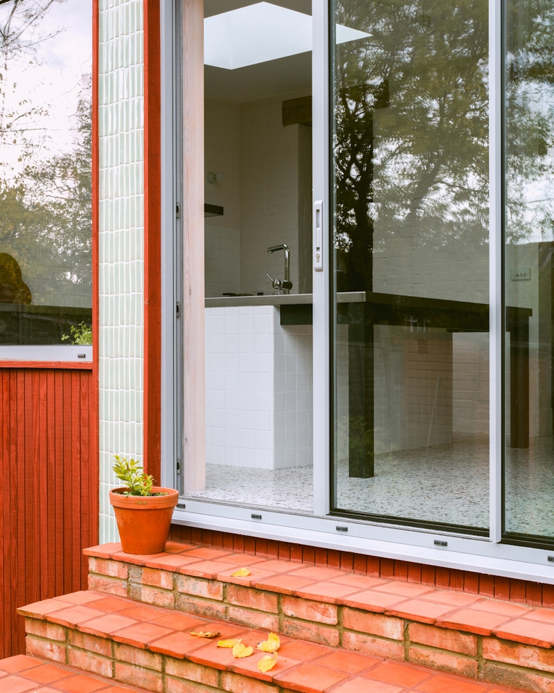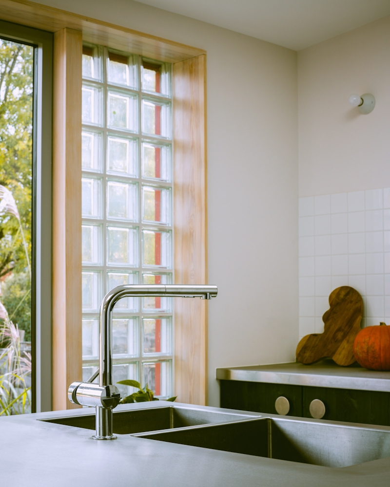 The external materials are expressive of the sustainable approach to the project, where structural steel was completely eliminated. The new structure is timber framed and insulated with wood-fibre, whilst new openings to the existing building are formed from hardwood lintels. Demolished brickwork is reused within the build, reducing waste and the amount of new materials brought to site.